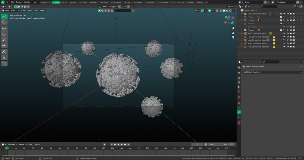 I created this Realistic Model of SARS-COV-2 known for the COVID-19 Pandemic disease, or simply called CORONA Virus, made with Blender, ready to render with Eevee and Cycles render engines. with lighting, shaders, materials, camera settings. file organized with proper layers and object naming.