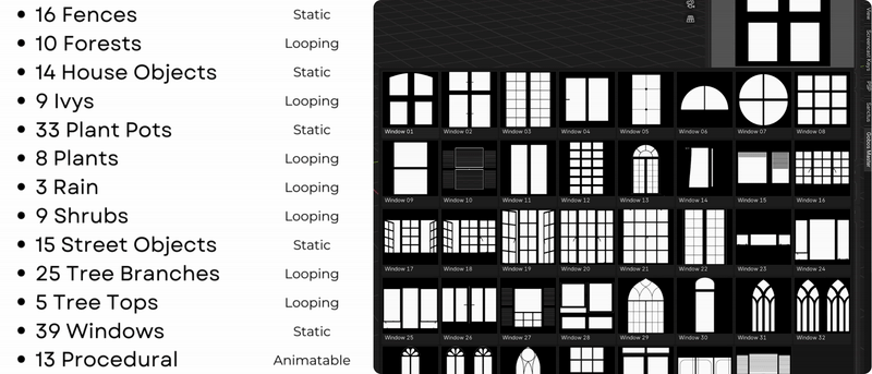 Gobos Master lets you infuse captivating, Real-time realistic Looping shadow effects into your scenes In a matter of seconds. It's a comprehensive library covering 13 categories of over 198 high-quality gobos to create ultra-realistic shadows in your scenes.